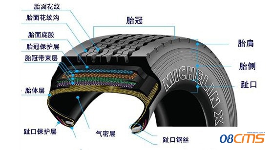 轮胎的构造主要分为胎面、胎侧以胎体层。