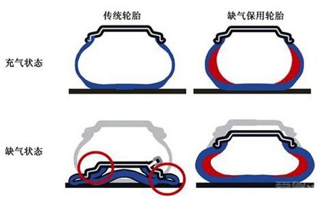 从原理上来看,防爆轮胎其实并不能防爆,他的作用实际上是在当轮胎漏气后者爆胎时还能满足一定速度一定里程的行驶。所以,实际上正确的名称应该是“缺气保用型轮胎”。缺气保用型轮胎在具备这些优势的情况下,也有较明显的劣势。比如:舒适性下降、轮胎噪音更大、簧下质量变重导致操控性能下降、轮胎成本较高等。但考虑到能够在漏气或爆胎的情况下给予车辆最大程度的安全行驶,总体来说缺气保用型轮胎还是利大于弊的。