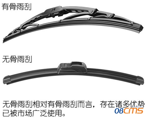 雨刮在雨天行驶时起到至关重大的作用,雨刮器的性能直接决定了驾驶员的视线。市场上车辆配备的雨刮可以分为两种,分别是有骨雨刮和无骨雨刮。有骨雨刷的原理是通过骨架上的若干支撑点把雨刮片压在玻璃上的,存在多个压力点。而无骨雨刷使用的一体化钢片,受力点比较均匀。目前无骨雨刮已渐渐地成为了市场的主流,它自身具有受力均匀、老化慢寿命长、重量轻、使用效果好等优点。