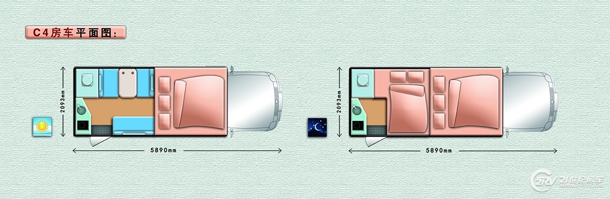 内饰上,览众C4房车则是采用了欧洲风格的造型设计,简洁大方,给人一种清爽舒适的感觉。不大的空间在设计师的巧妙设计下,将每一处空间都合理使用上,将每一处功能区域清晰明了的区分开来。尽管双排皮卡底盘占用了生活空间,但依然不影响内部活动空间,额头大双人床(1900×2000mm)相对要比单排皮卡房车更舒适,空间更大,这就是C4的优势。