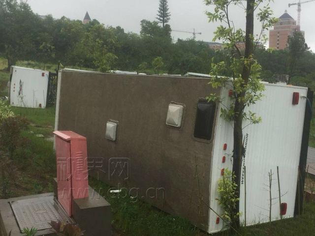 据基地负责人介绍,当晚险情发生后,基地立即把游客疏散到了安全地带,没有出现人员伤亡。基地里一共有16辆露营房车,每辆车的顶棚几乎都被大风刮得不见了踪影,甚至有两台房车还被掀翻在地。初步统计,基地损失上百万。