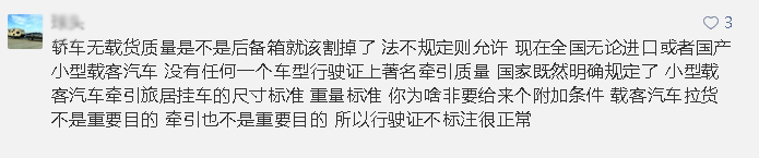 这篇讨论的帖子引起了不少网友们的激烈讨论,甚至不少网友把去年底刚刚出台的机动车技术标准7258文件拿出来做了详细的论证。对此,大家依然坚持旅居挂车并不需要A2驾照牵引,并且交警所说的大部分国产轿车不具备牵引功能的论断,并不具备权威。