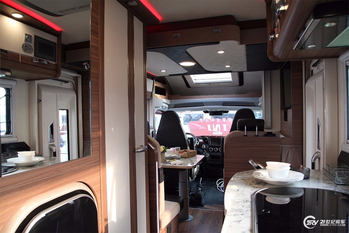 当然,我们从工信部官网公示的图片中发现,这款车还有一款大额头的车型可供选择,内饰布局和色调搭配可能稍有不同,这款黑红色的进口依维柯IN1房车在今年3月份的展会报价为83.38万元,仅供参考。