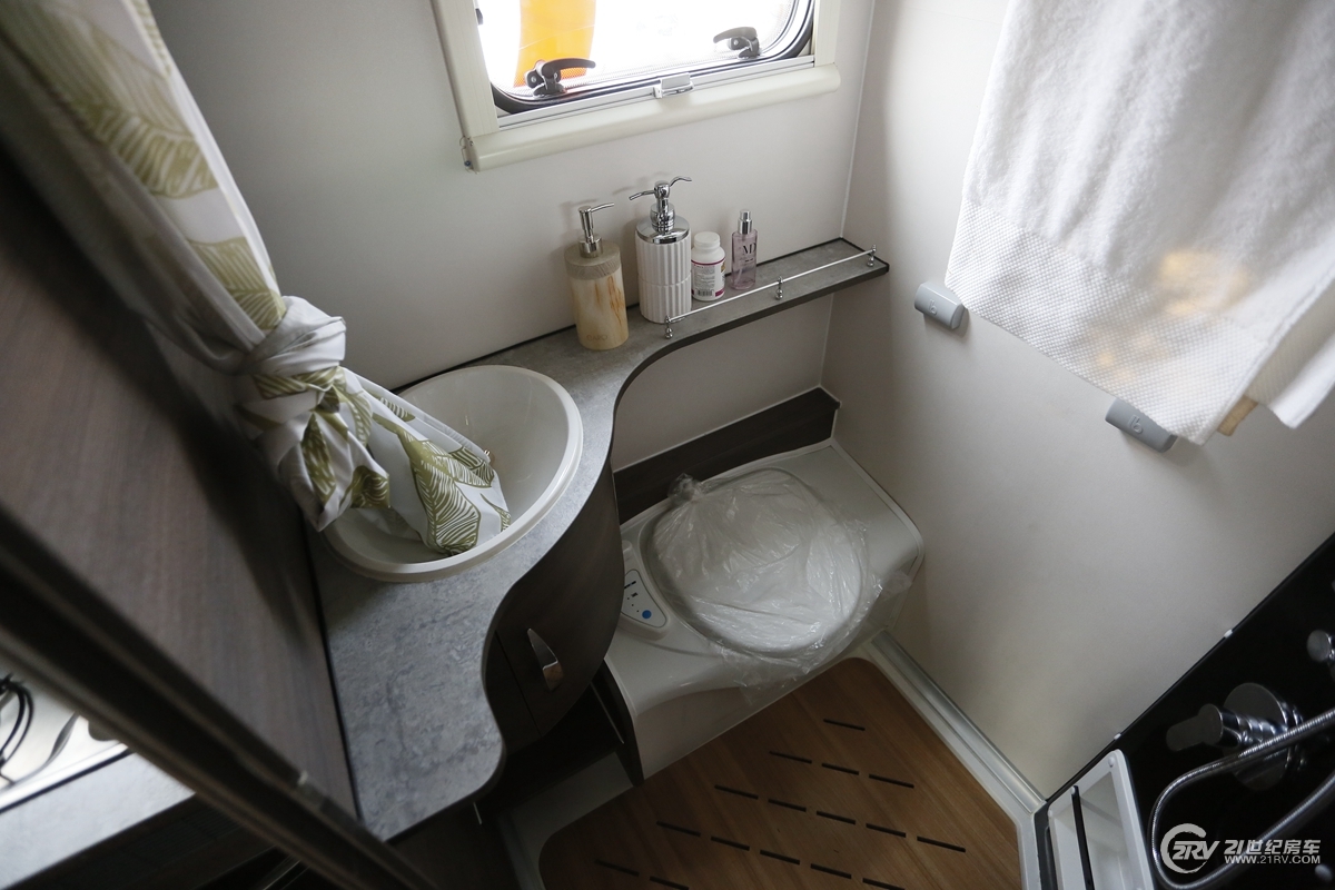 再来看看卫生间,这是旌航房车最引以为傲的设计,同样的6米以内长度,卫生间总是大的让人惊讶。卫生间内集成了赛特福德马桶,洗手池和淋浴系统。防滑地板和储水是分层设计,贴心的考虑到了洗澡的便利性。卫生间顶部有双气流换气扇,单独的淋浴系统。其他配置:150L净水箱、70L灰水箱、16L黑水箱、1600W充逆变一体机、240Ah胶体电池。