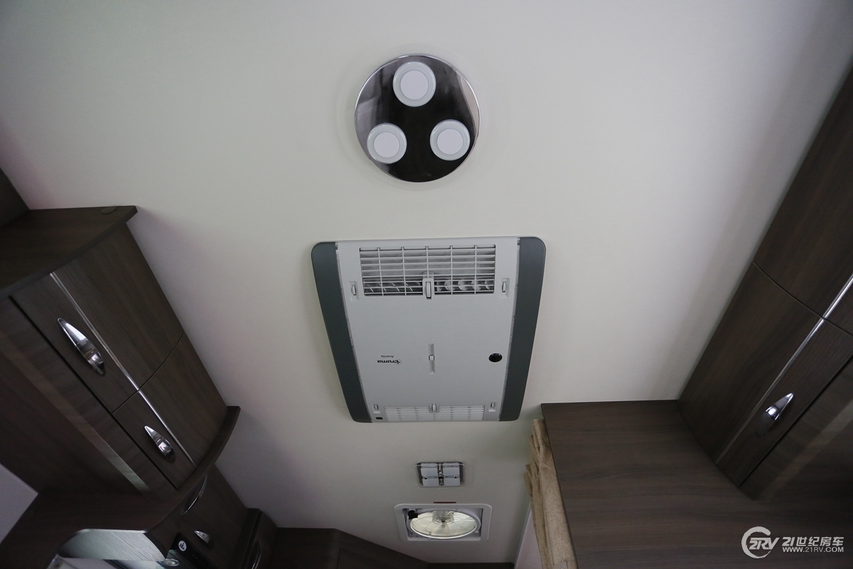 这款车的灯光设计和以往的车型类似,不少灯具都是通过手势感应去调节亮度和颜色的,非常方便。车顶部是换气扇和进口特鲁马驻车空调。