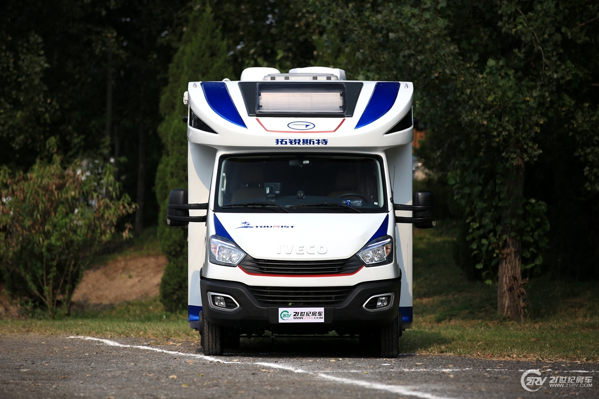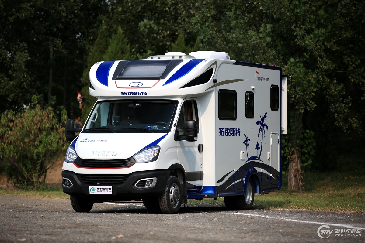 拓锐斯特房车的进步实在是太快了,从去年开始整体车型的品质有了质的飞跃。尤其是在今年开年的北京房车露营展览会上,集体中国蓝颜色车型亮相北京。今年9月份随着依维柯自动挡底盘的量产,拓锐斯特的新车接踵而来。这款命名十分洋气的车型,称之为弗瑞德姆,由英文单词Freedom音译而来。新车的外观依旧中国蓝配色,陶瓷白主色调,车身尺寸5850×2400×3150(mm),小额头设计,采用了后拓展形式,整车核载5人。