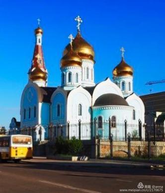 赤塔喀山圣母圣像教堂。教堂是一座巨型砖建筑,有着十九世纪中叶俄罗斯拜占庭建筑风格,有着五个圆顶和一个庑殿绳拉钟楼。建于2001年6月12日,在2004年9月26日奉献给东正教徒作为教堂使用。外观金碧辉煌,比较壮观。在夕阳的照耀下,显得格外静谧优美。 赤塔火车站出来,正对便是此教堂。