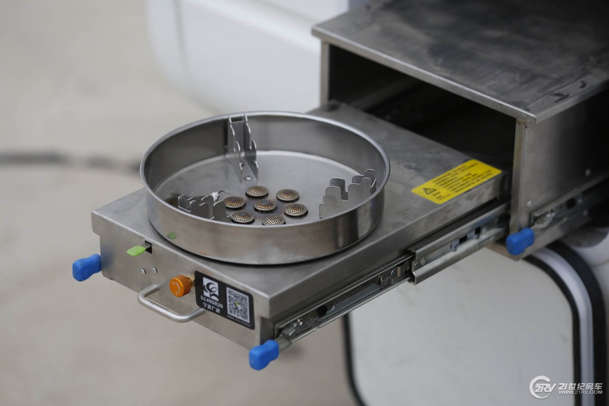 新车还配备有外置燃气灶,灶台底座采用抽拉式结构,不使用时可收至舱内。在车外炒菜时无需担心油烟问题,另外燃气灶自带防风罩,能够应对一些微风天气的使用环境。