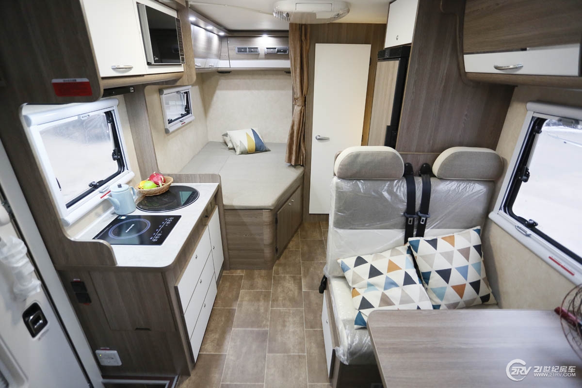锐尚版的车内采用了纵置床布局,会客区也采用了单排卡座沙发的形式。不难发现弗瑞德姆全系车型都在追求一种精致的房车生活,在可承载人数及床位数则没有过于要求,新车尾床尺寸为1850×1250(mm),不过对于居住人数有需求的用户,弗瑞德姆3款新车也支持选装电动升降床位。配置方面,新车配备外置厨房、150升净水箱、80升灰水箱、车内22寸车载电视、2000W逆变器、赛特福德152升房车专用冰箱、燃油暖风热水系统、烟雾报警器+LP&CO报警器、太阳能电池板及200Ah电瓶组。