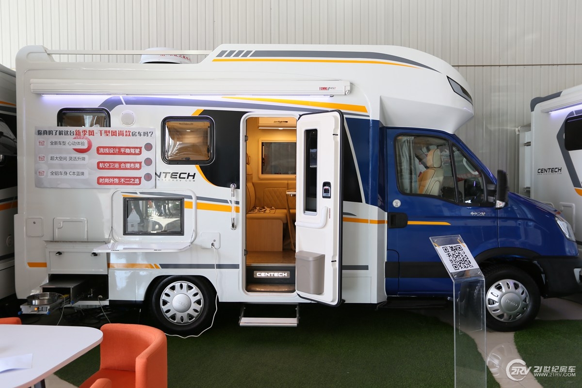 【21RV 新闻】第18届中国(北京)国际房车露营展览会暨2019第18届中国国际房车露营大会在房车世界·北京房车博览中心举办。中天带来一款新车型为中天新季风T型风尚款,指导价57.8万元,展会期间直降4万,售价53.8万。
