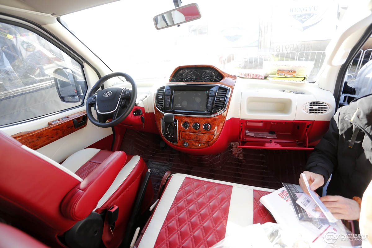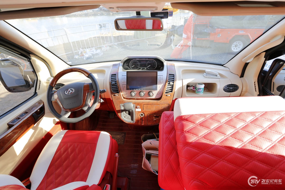 新车在驾驶室部分进行了装饰,红色的中控面板与生活区整体颜色更加统一,另外驾驶室车门内侧及中控台上也添加了木纹饰板。