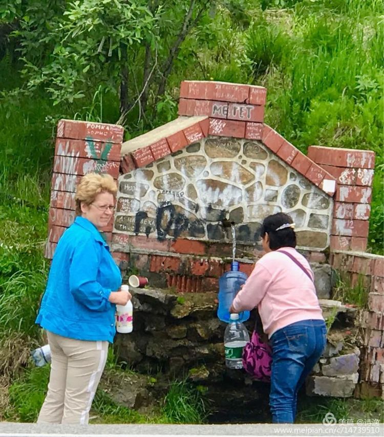 在这里路过的车辆都拿瓶子接矿泉水喝