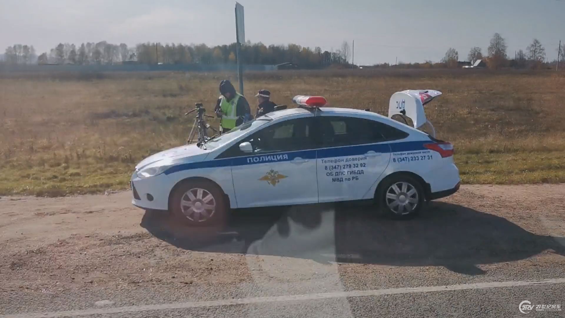 傍晚时分我们行驶在一段视线比较好的路段,面对唯一能超车的机会,当然就超车啦。当我们超车一半的时候,对面的车给我们发射来信号灯,就这样在我们刚超越大货车,在一个开阔的地方,警察说:“靠边,嘿嘿”。