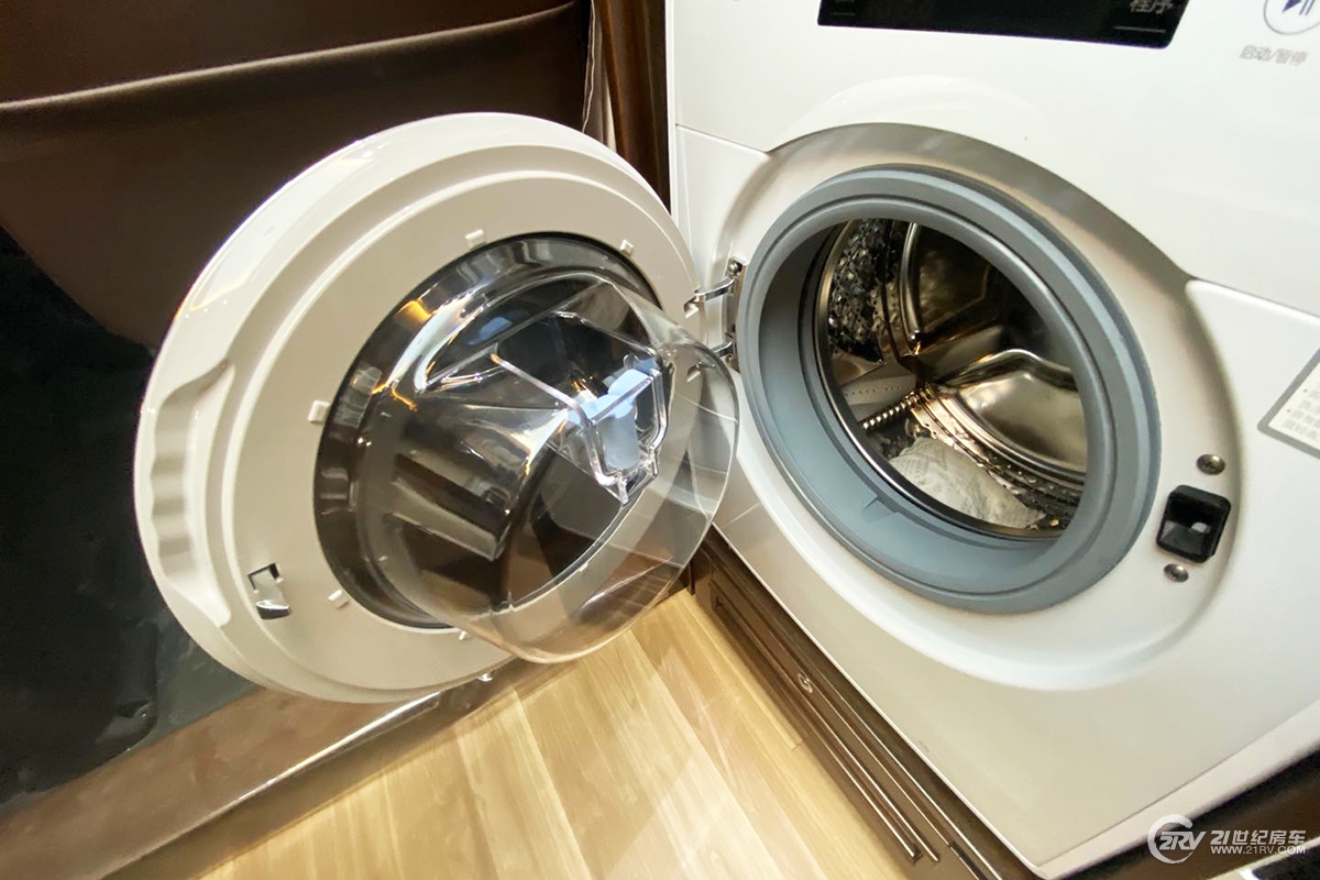 厨房区位于车厢中部,配有不锈钢洗手池、微波炉、ASCOLi油烟机及一台152L双开门车载冰箱等;位于乘客门上方的房车智能控制系统采用触控屏设计,可控制车内照明及各个电器开关等;电器方面配备1台智能开水器、创新型净水和热水系统、智米家用驻车空调及伟巴斯特燃油加热器等。