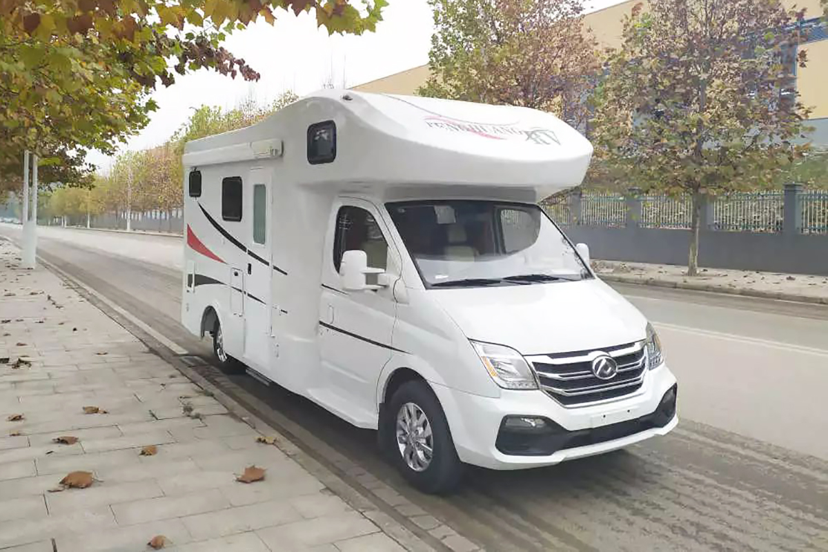 车身厢体为FRP轻量化结构设计,保证了车身整体刚性的同时也降低了重量;标配遮阳棚、电动踏板、市电输入接口、外置厨房、外置淋浴花洒、备胎、150A发电机、400W太阳能板、400Ah磷酸铁锂电池及3kW充逆变电一体机等。