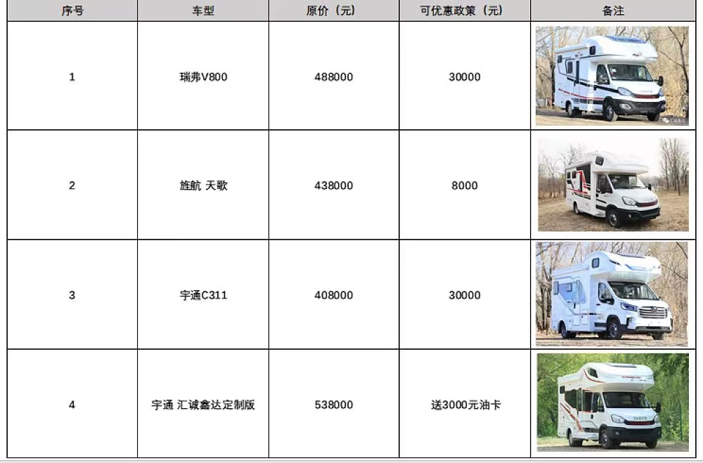 注:具体车型配置按活动当天车型为准,活动当天各车型优惠价格可能也会有相应变化,最终解释权归21世纪房车所有