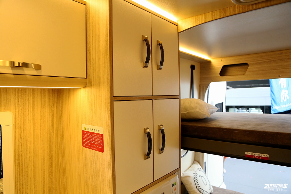 尾部放置了上下床铺,可供至少3名乘员休息,另外用户还可利用冰箱上方的储物柜、尾舱放置一些物品。