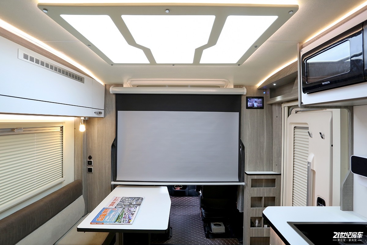 罗曼特斯T2 Pro提供选配投影仪,对电视机有需要的用户也可以选择电视机。车内标配小爱音响+小米语音控制系统,所以不论是选择投影仪还是智能电视机,都能通过语音控制系统进行操作。