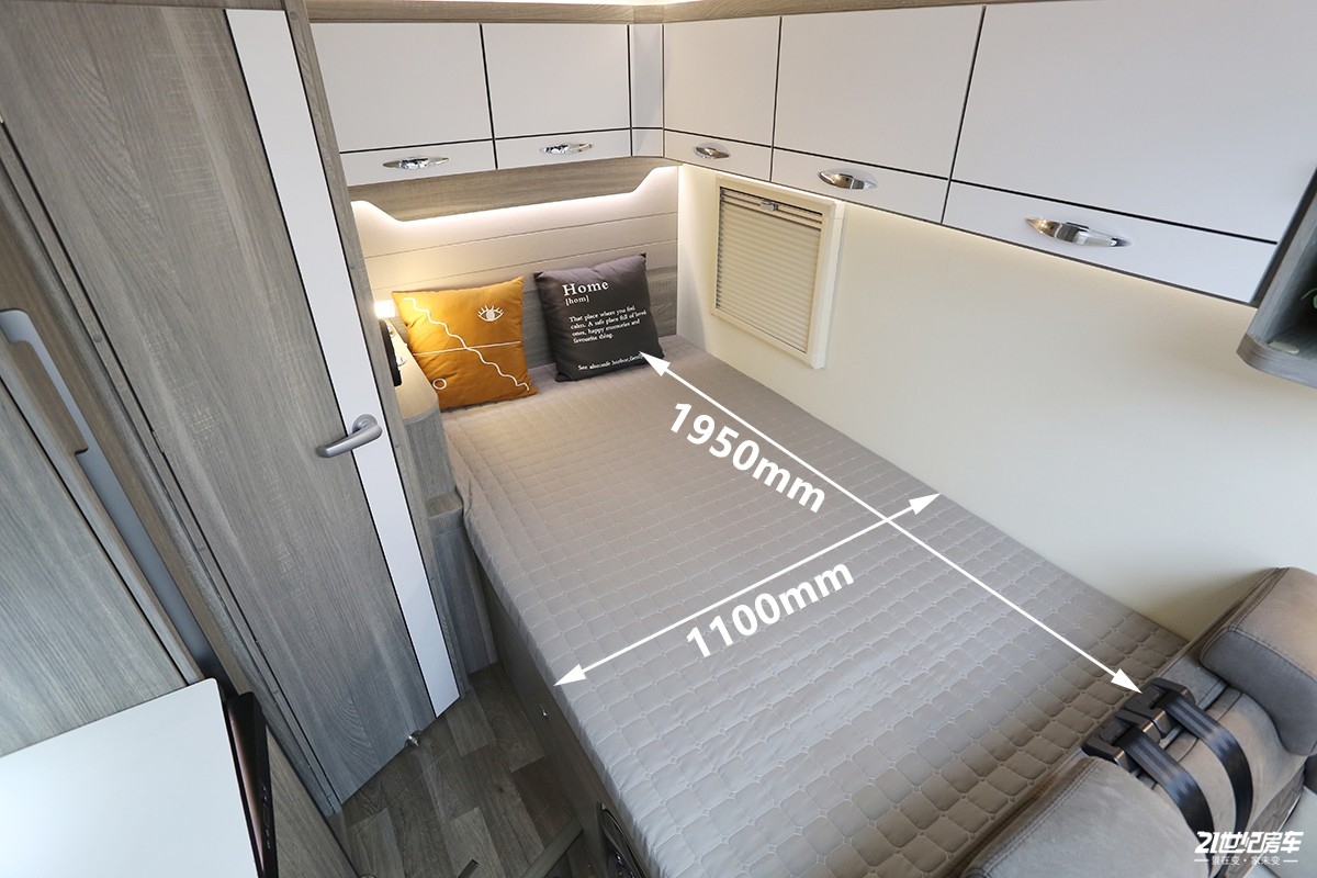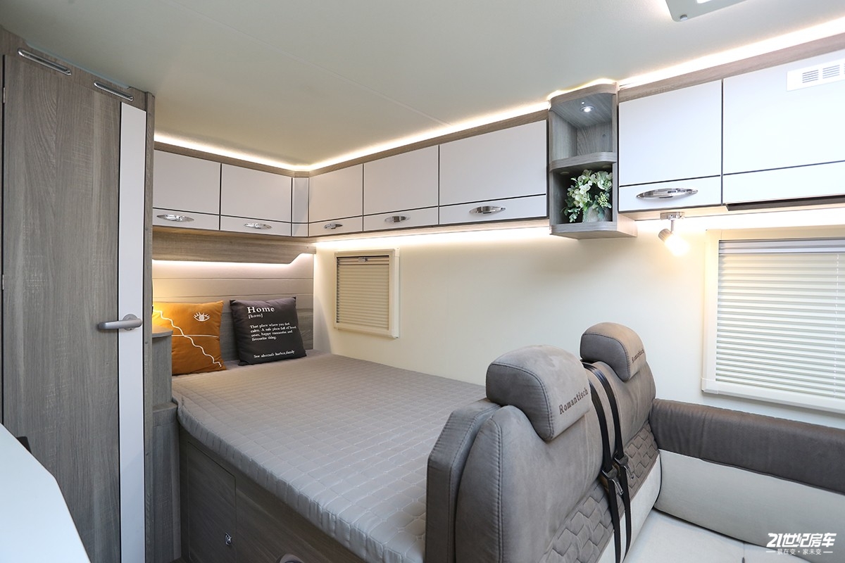 整体式卫生间如今已经被大部分车型所认可和应用,罗曼特斯T2 Pro的卫生间也是这种整体吸塑的工艺,防水性好,在灯光的反射下也更明亮。卫生间配备了木质底托、赛特福德马桶、洗脸池等等。水路系统方面,标配200升净水箱、70升灰水箱。热水来自进口过水热系统。