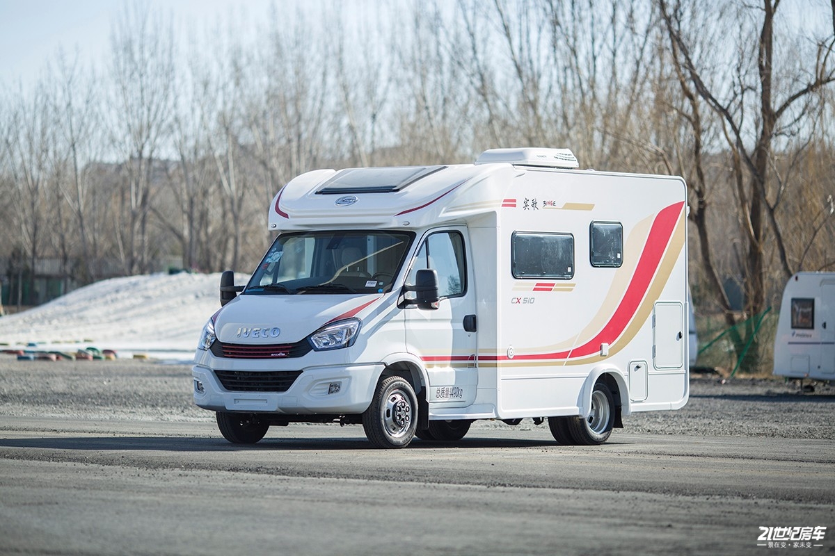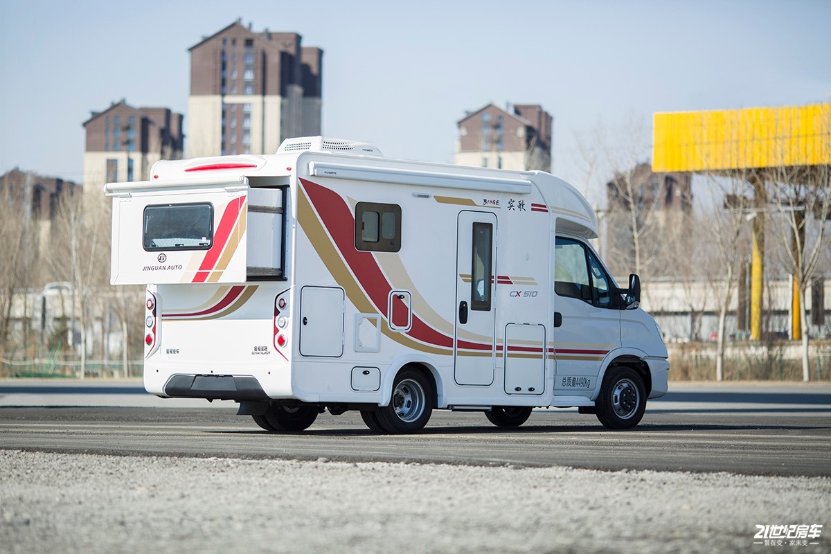 宾歌CX510是一款后拓展版房车,全新中国风拉花是基于全新品牌而设计的一款样式,将全部应用于所有车型。宾歌CX510的车身外尺寸为5.99×2.45×2.95(m),这款车外观最大的工艺优势就是无胶工艺,板材间采用拉铆结构,这样就杜绝了开裂、长期暴晒太阳下的变黄问题。车体采用航空级铝合金骨架,比传统厢体轻10%左右,同时能够带来更好的操控以及减小油耗。