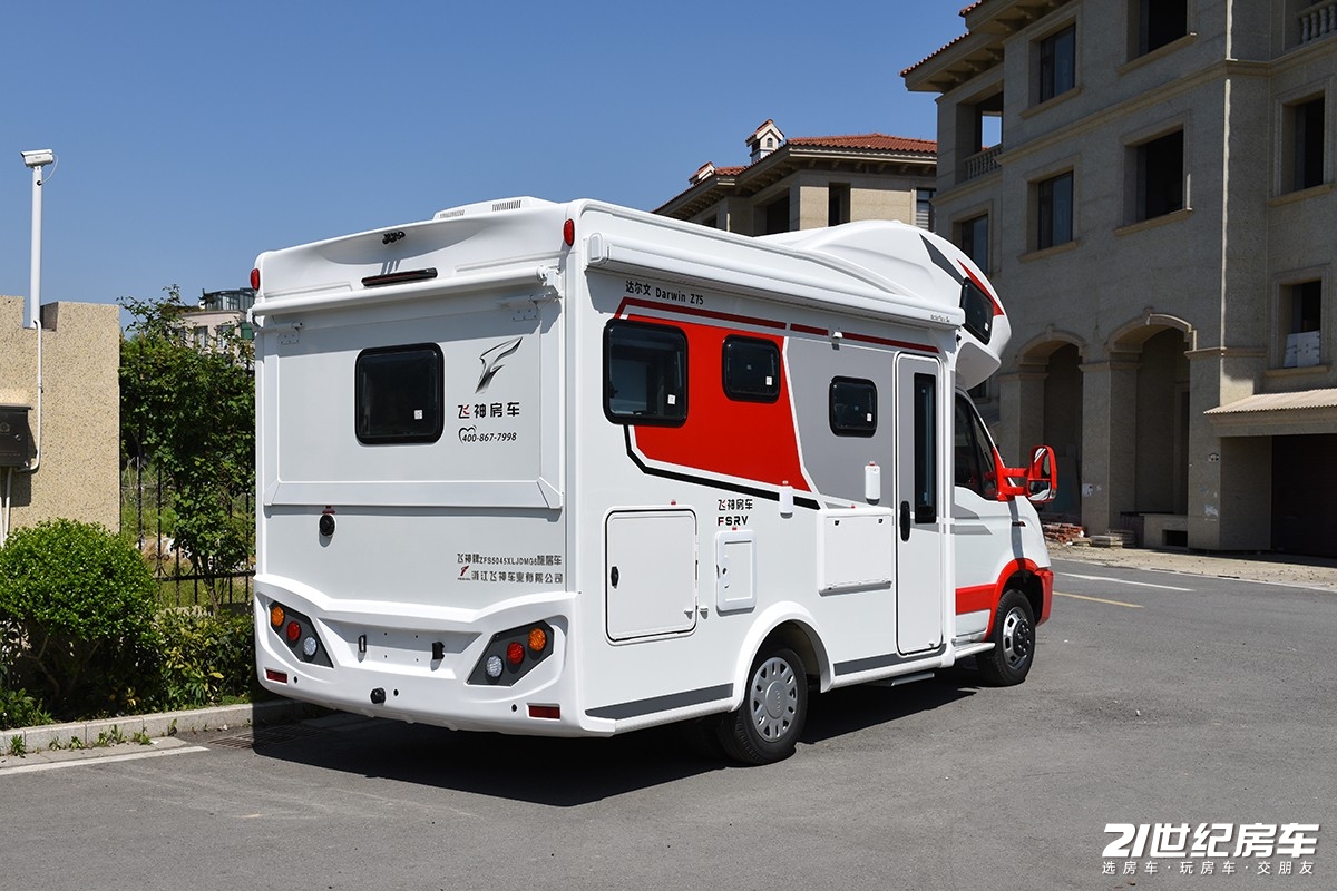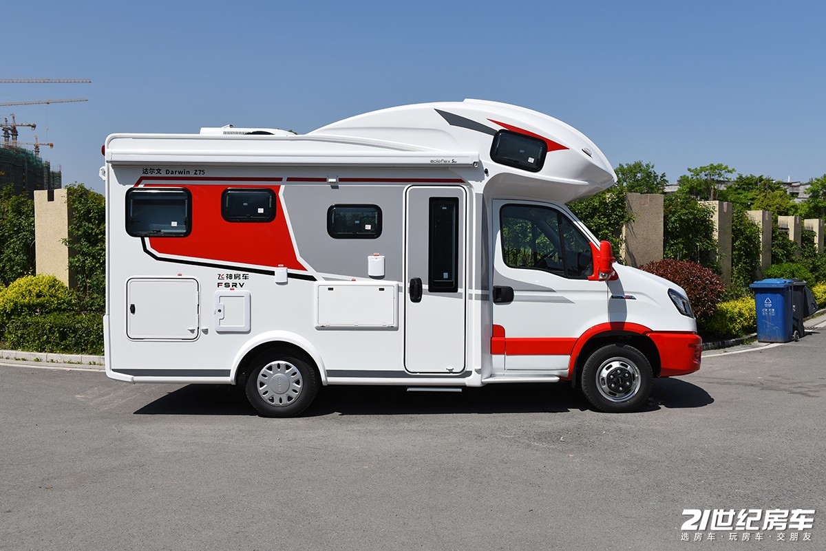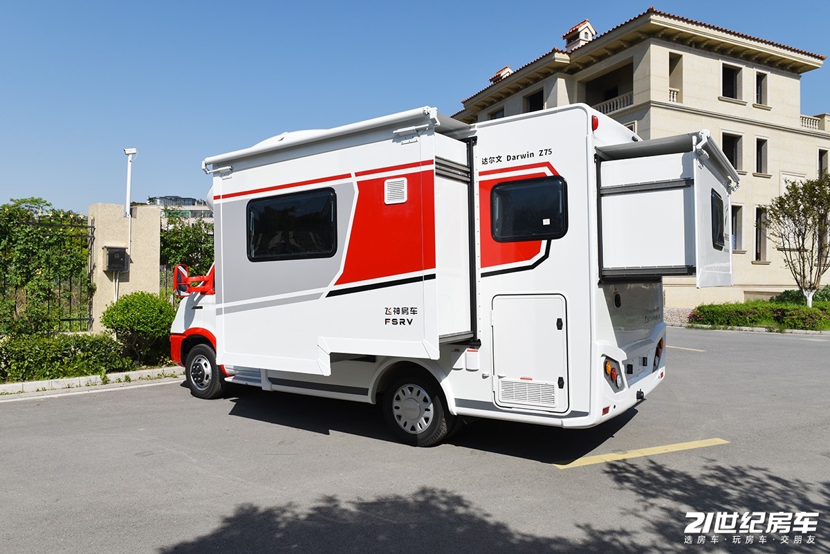 【21RV 新闻】在法规之内解决用户对大空间的需求,一方是底盘优势选择,比如平头轻卡房车天然拥有大空间,另一个方面就是通过物理结构增大空间,因此拓展型房车一直是用户最喜欢的房车类型之一。今天来给大家看一款来自浙江飞神房车全新达尔文系列的一款Z75双拓展旗舰版车型,它的售价为52.8万元。