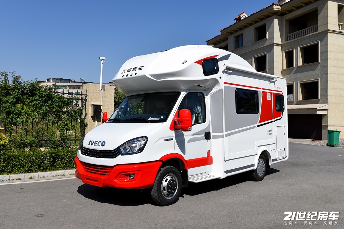 飞神房车近两年来推出的全新系列——达尔文,在外观和内饰上都得到了全面的提升。就拿这款达尔文Z75旗舰版双拓展房车来说,整车采用白色高亮度铝板车身设计,但是通过红色的装饰,整个车子的性格变得浓烈起来。全新开模的大额头造型,从侧方更能get到它线条的流畅。达尔文Z75这款房车的外尺寸为5995×2415×3150(mm),车身右侧配备有折叠桌板,220V电源插座以及加水口等基础设备。动力方面,搭载的是一款3.0T柴油发动机,匹配8AT变速箱,最大功率170马力,峰值扭矩400N·m,整车核载6人。