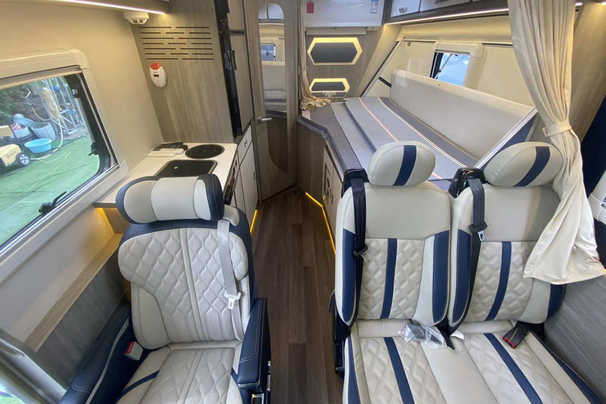 中老年朋友依然是当下房车市场的主力军,爱旅途夕阳红系列房车基于上汽MAXUS V90底盘打造,各项智能安全配置加持,车内布局及生活配置也尤为突出,人性化设计,舒适的驾乘感受,采光和通风换气效果极佳,通过不同布局可定制化选装配置来满足你的房车美好愿景。
